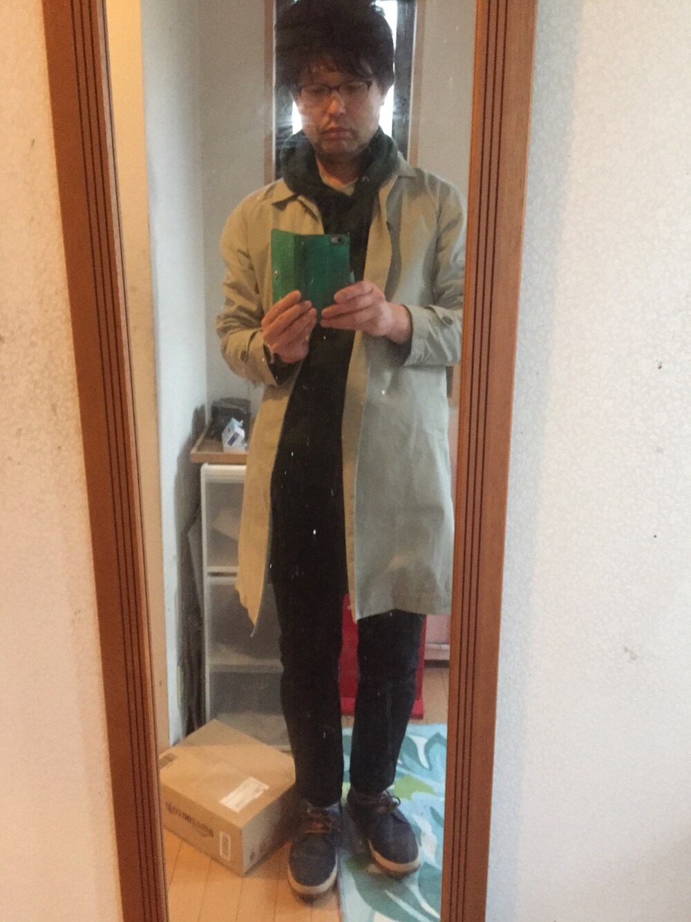 前のコーデですが、顔出します。パーカーと重ね着はあまりしないのです。パンツはUNIQLOかな?忘れた。