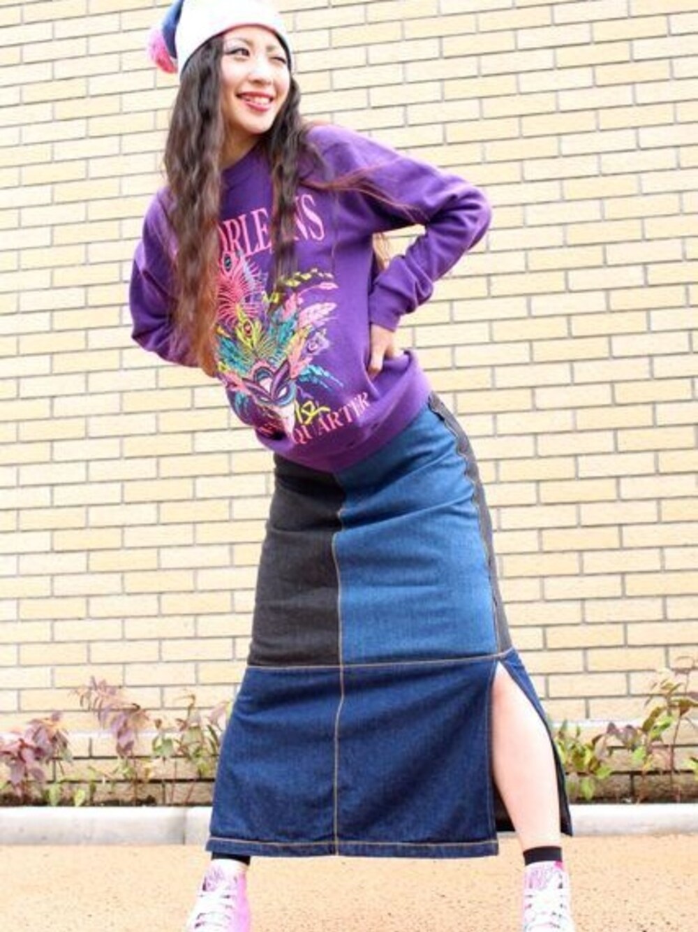 sweat vintage denim skirt vintage shoes skechers beanie Mr.GUGU&Miss GO socks da-sein