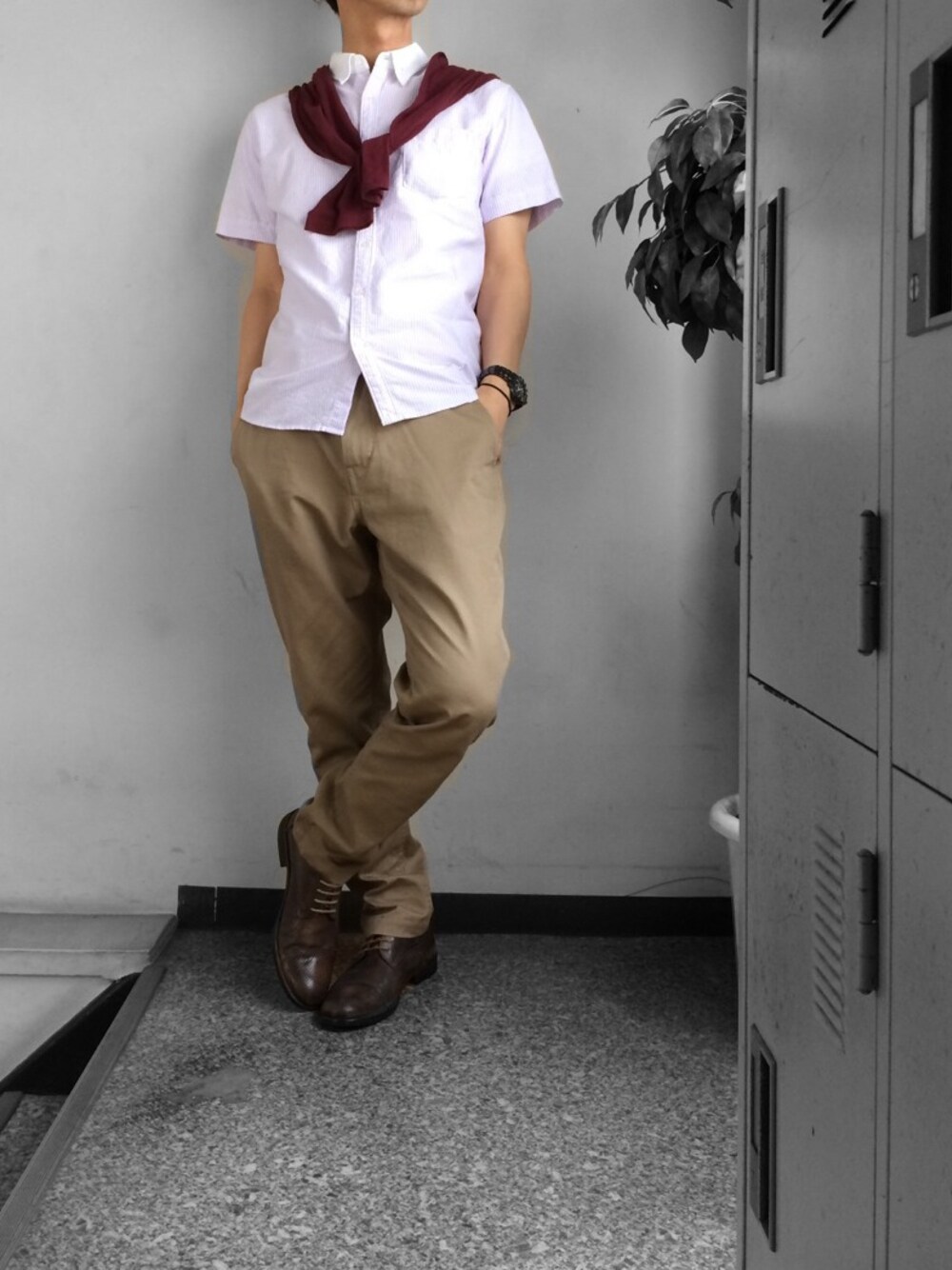 昨日、青い羽織り物を持ってたのに写真に入れなかったのをちょっと後悔したので今日は巻いたった件 バーガンディー・・・(ローラ@キンキーブーツ というわけで代わり映えも面白味もないいつもと同じ感じに仕上がりました。 しかし白いスニーカーってのもアツいタグやなあ。一昨日のやつだけでなく今日も履いてくりゃよかったかな。 とにかく、朝起きてから出勤服を決める、ってのはどうもいかんことなんやな?とWEARを始めてからわかりはじめたマイ・レボリューション。 こちらからは以上です。 ⍨⃝