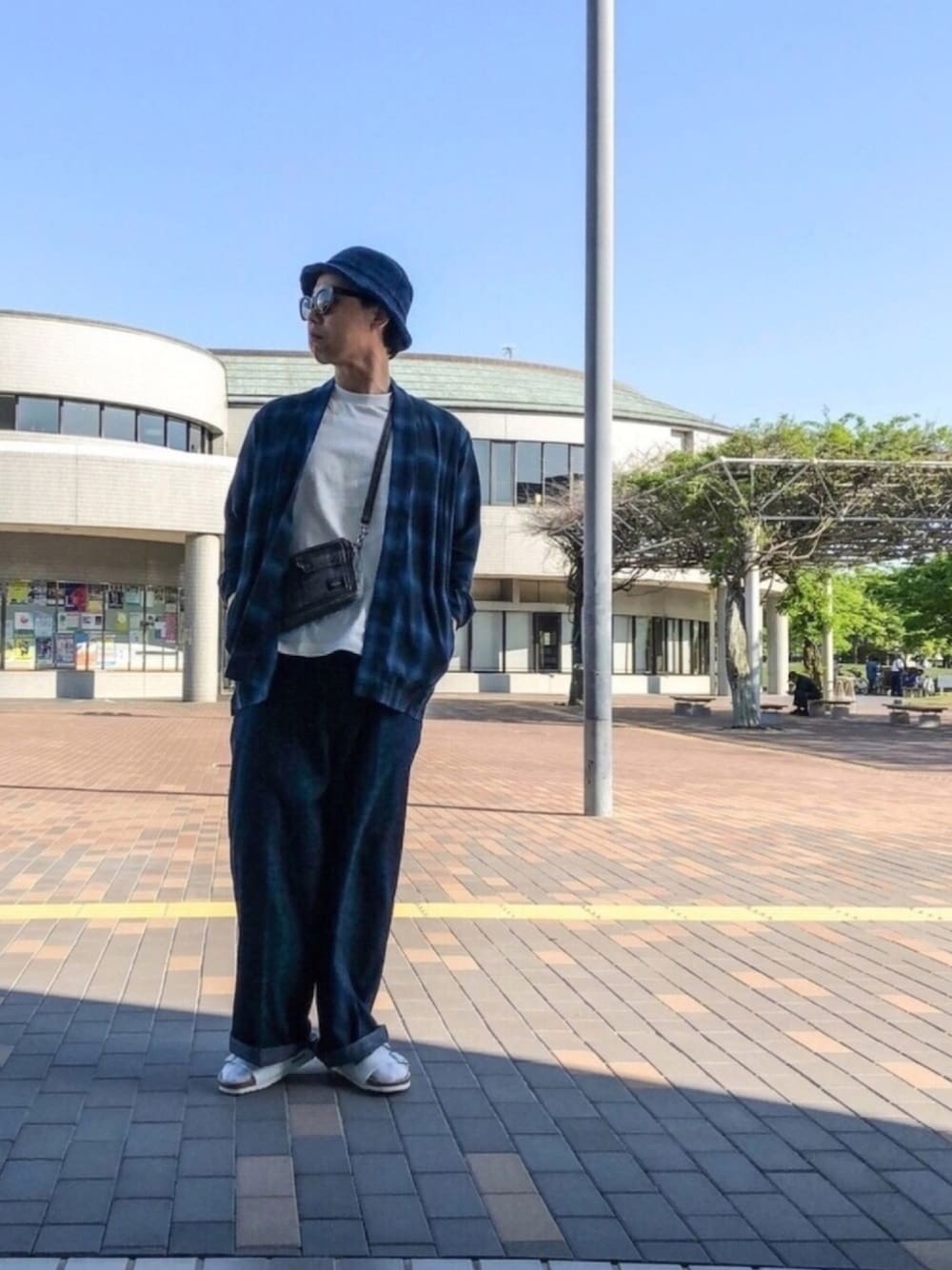 ☈ ¥ ⍨⃝⇑のカーディガン/ボレロ「//着流しオンブレーチェックシャツ」を使ったコーディネート