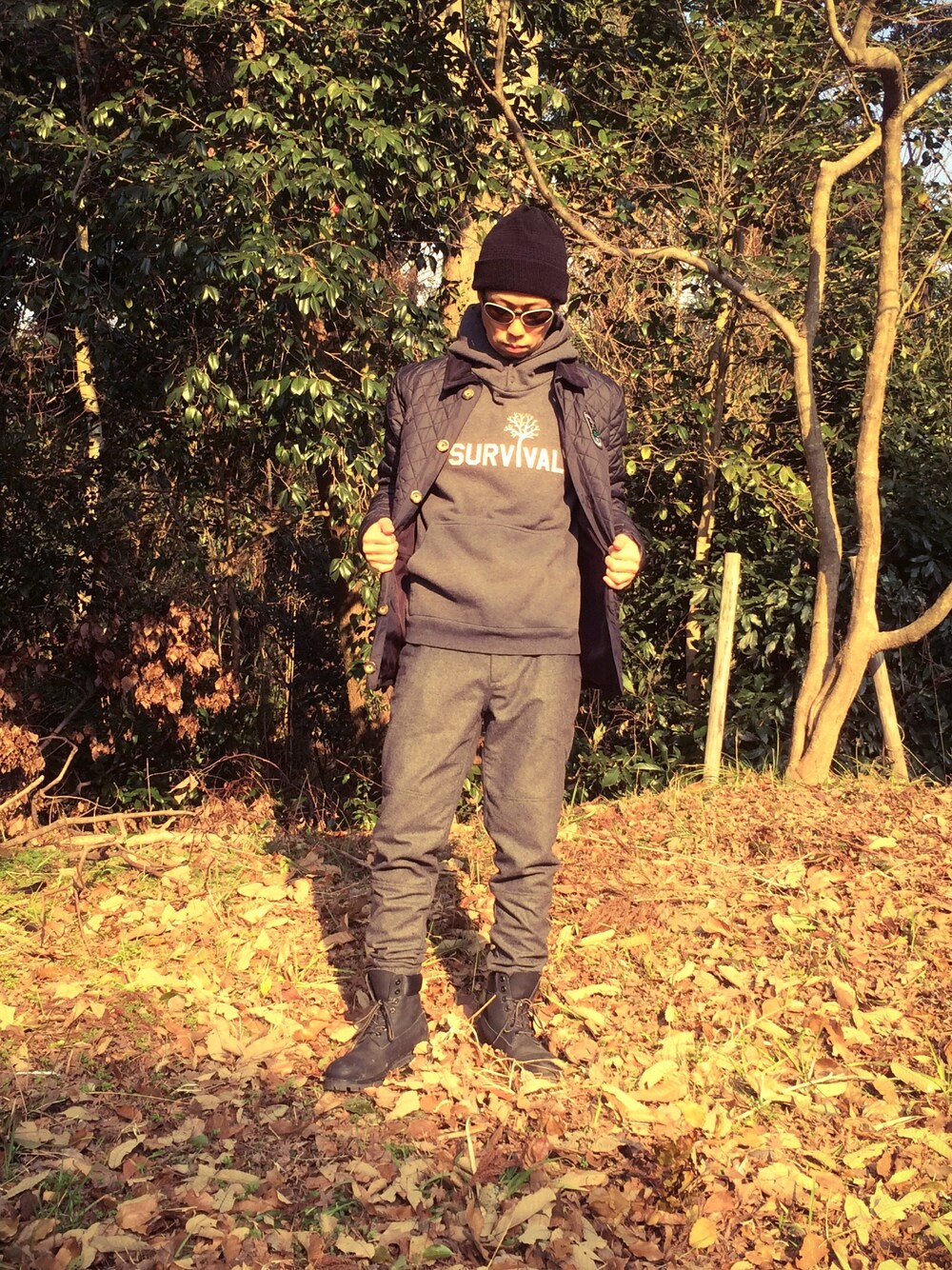 ☈ ¥ ⍨⃝⇑のパーカー「SURVIVAL SNAP HOODIE」を使ったコーディネート