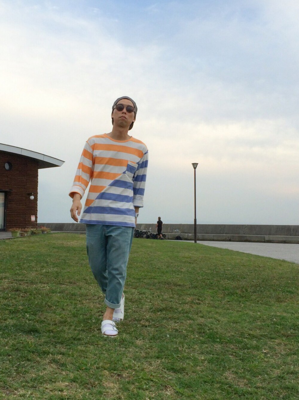 ☈ ¥ ⍨⃝⇑のTシャツ/カットソー「ツギハギ2色ボーダーTEE LS」を使ったコーディネート