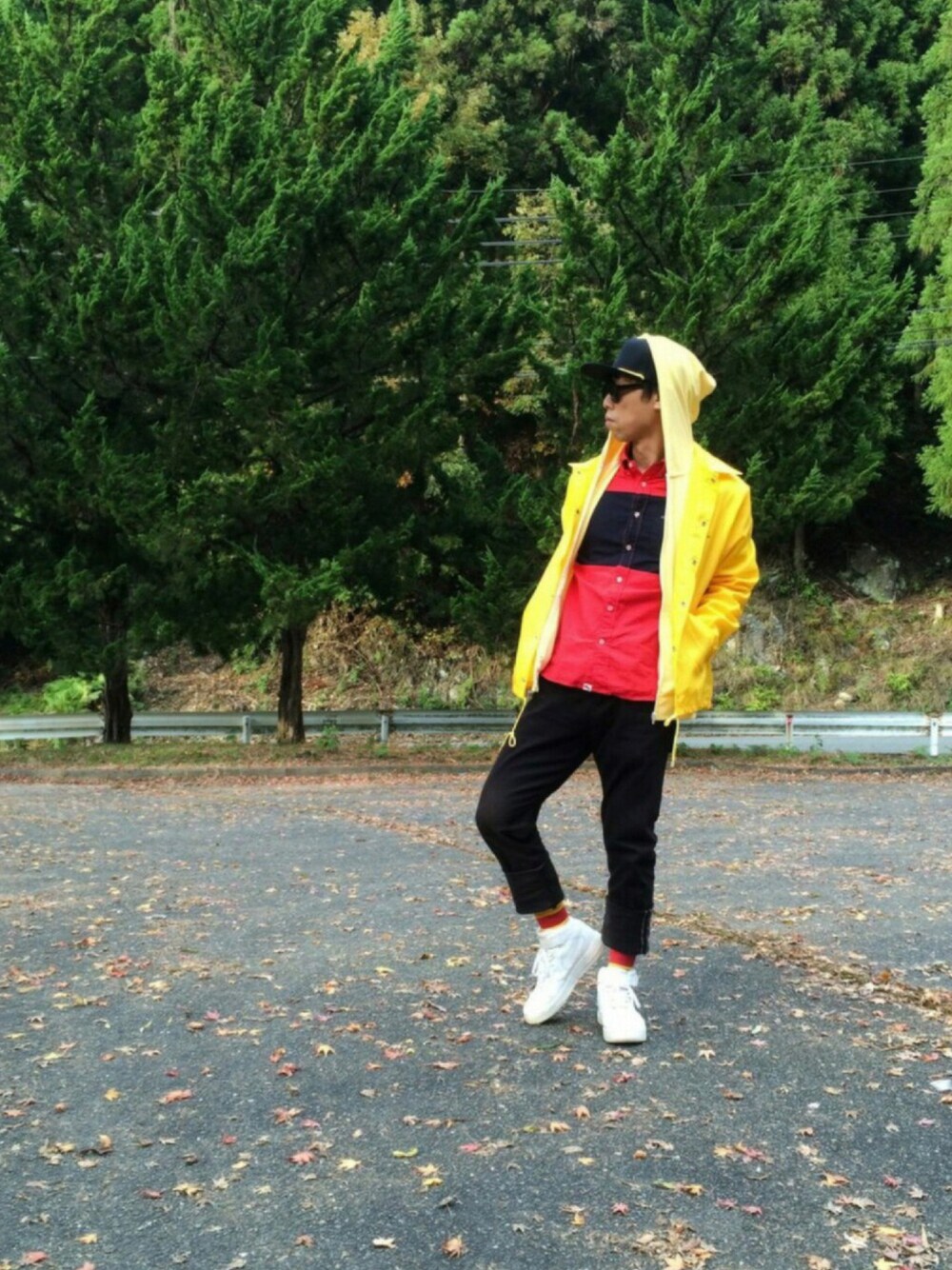 ☈ ¥ ⍨⃝⇑のナイロンジャケット「バックプリント」を使ったコーディネート