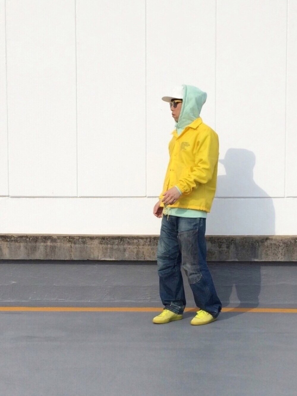 ☈ ¥ ⍨⃝⇑のナイロンジャケット「コーチジャケット”STARS AND STRIPES” / MADE IN USA」を使ったコーディネート
