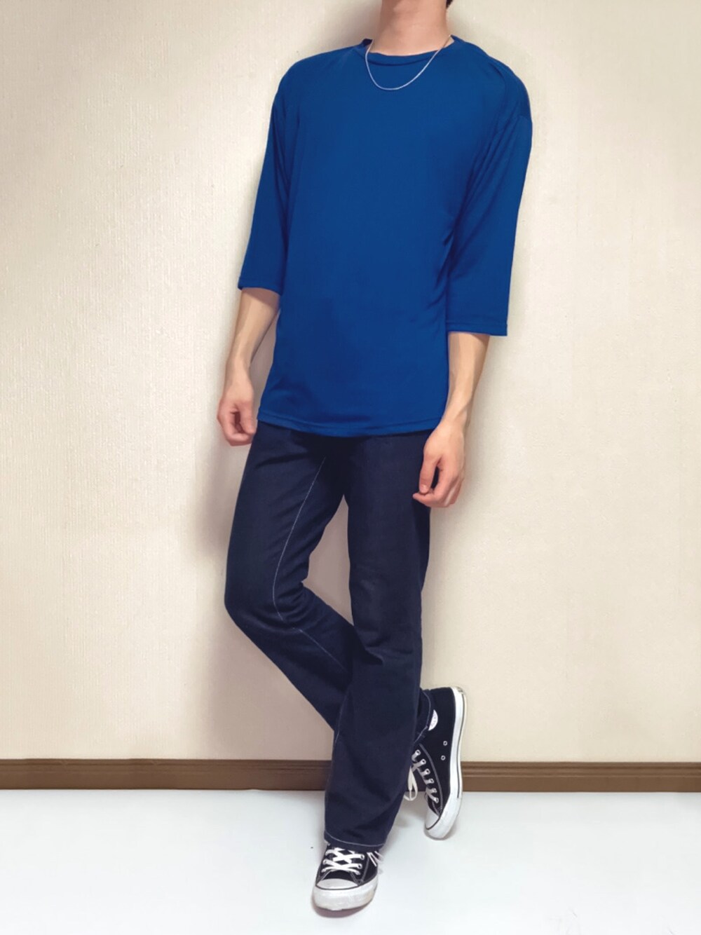 青色コーデのうた⚫️⚪️🔵のTシャツ/カットソー「Confirm / コンファーム 天竺7分丈Tシャツ」を使ったコーディネート