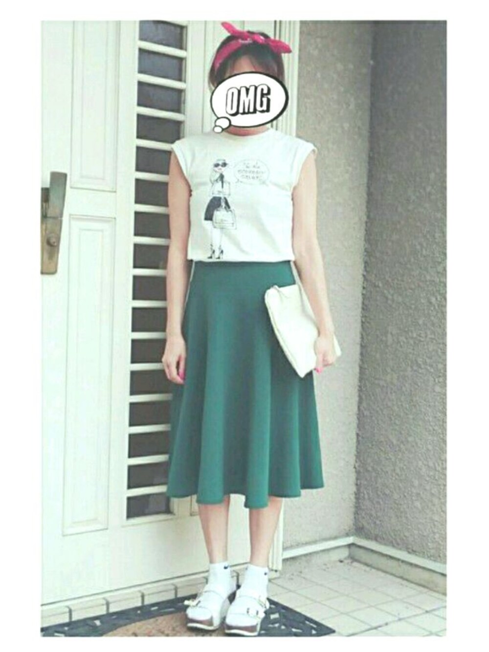 TシャツはguでSale590円♡ トータル5000円以下かな? バンダナ(ダイソー)→108円 Tシャツ(gu)→590円 スカート(楽天)→1080円 クラッチバッグ(しまむら)→500円 NIKEソックス→980円(3p) サンダル→1990円 プチプラ万歳♡