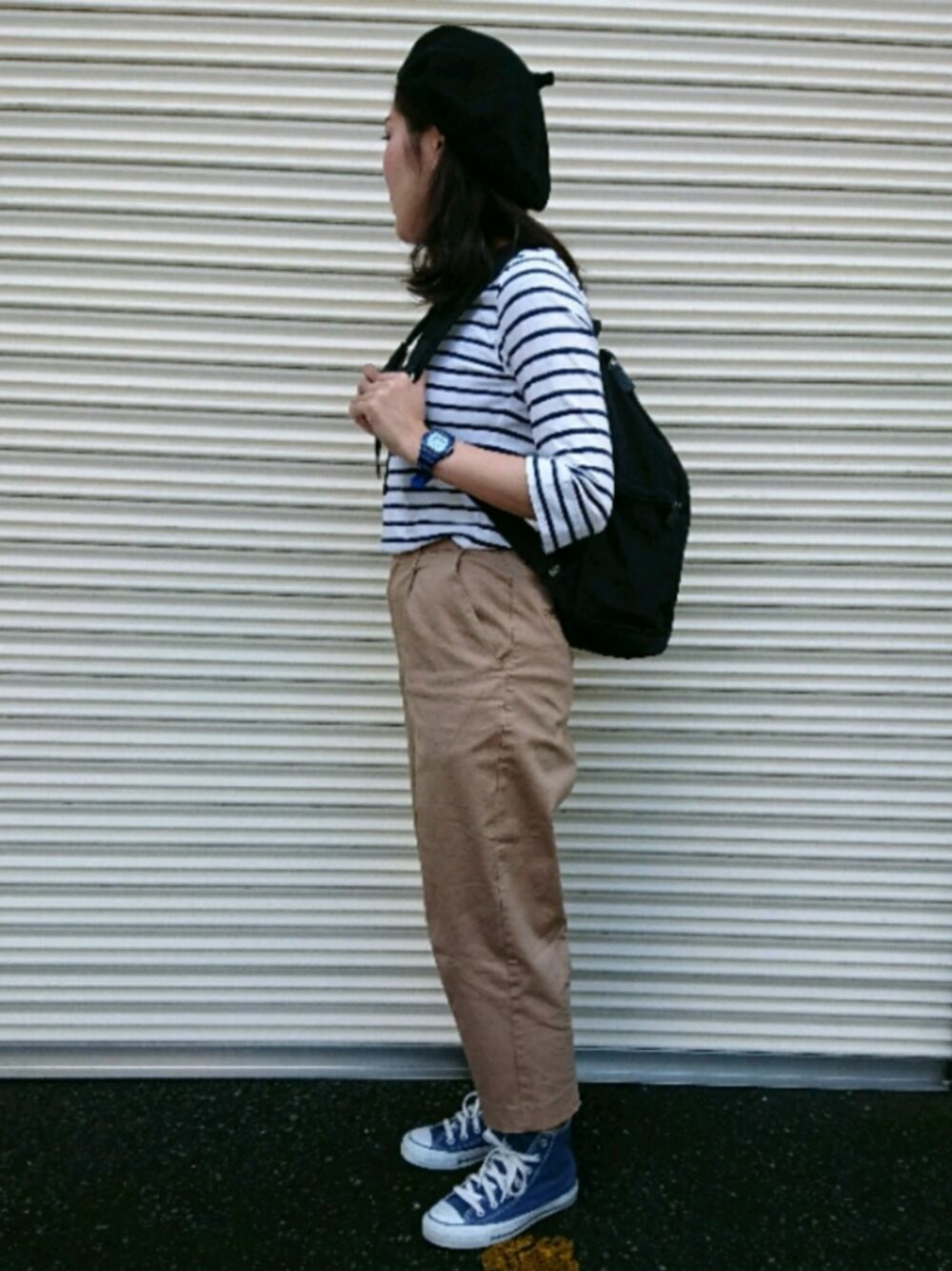 ボーダーが着たくなる時期が来ました!笑 ディスコートで前に破格の値段でゲットしたパンツは丈感がgoodです(°▽°) ベレー帽はコットン素材なので、柔らかく通気性もいい~* 見ていただきありがとうございます^^!