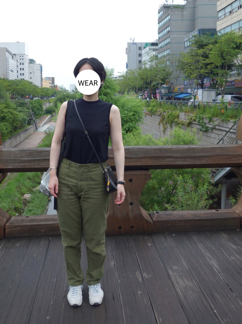 ソウル旅行。清渓川にて。 動きやすいシンプル楽チンコーデ。 このユニクロサマーニット、やっぱり大好き🤗 同じ形の新調したい🙄