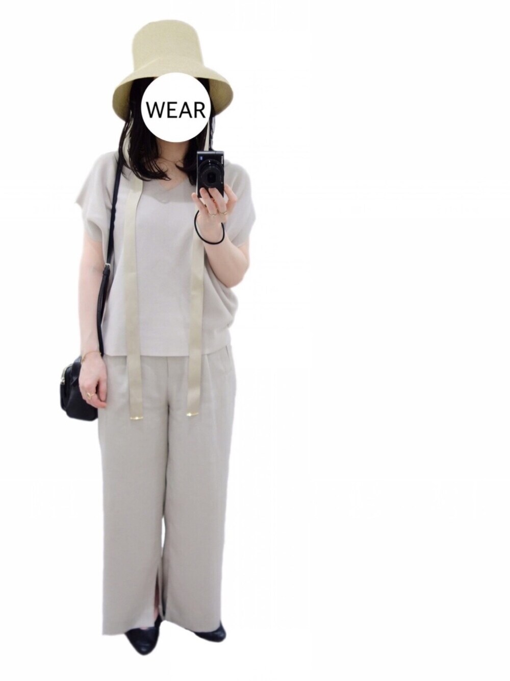 日差しが強かったのでお帽子👒 小物も全てワントーンにまとめようかと思ったけど、黒を入れたくなりバッグと足元は黒に。 暑いのでゆるゆる。 美容院帰りで珍しくダウンヘア💇♀️