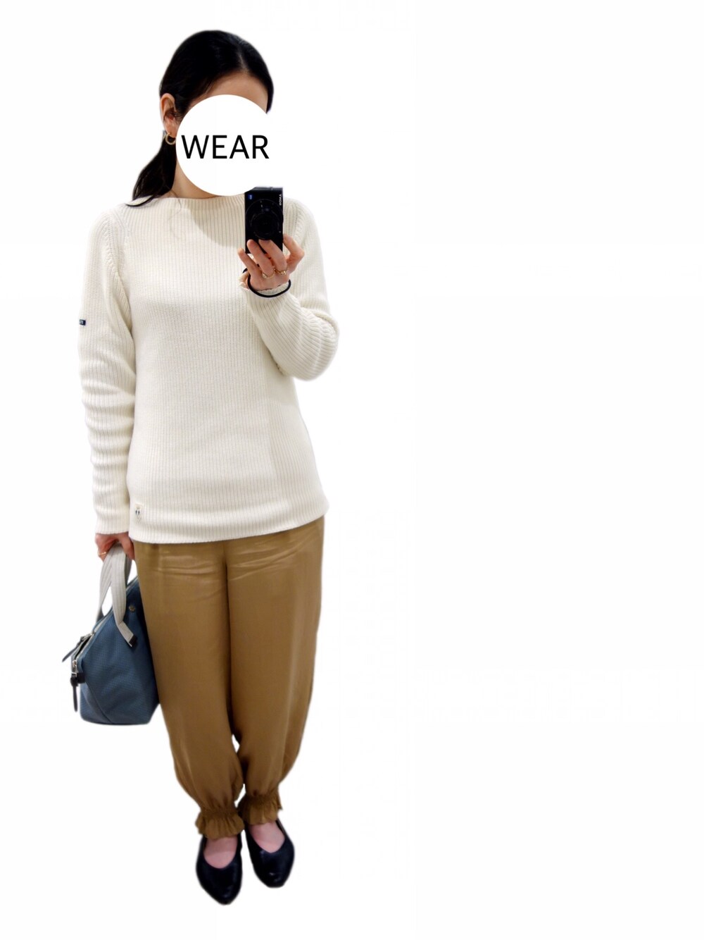 ノーアウターなニット1枚シーズンを楽しみたくて。 ベージュと水色の組み合わせ、なんか好きでバッグはブルーグレー! 靴は違うのが良かったかなぁ😶