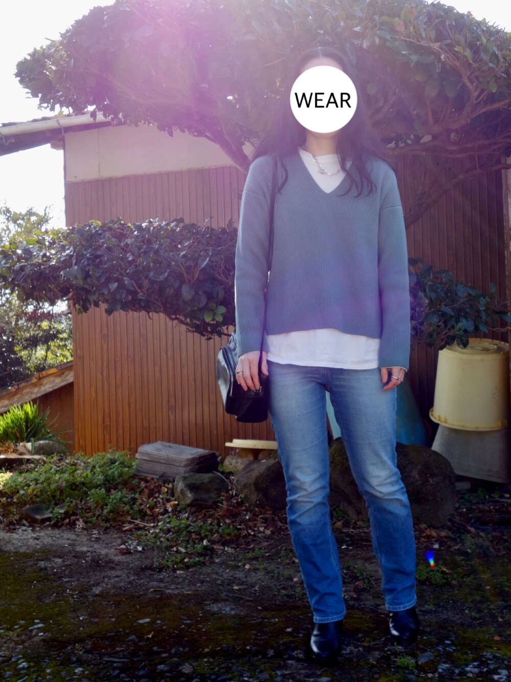 ブルーコーデに白と黒入れてシルバーアクセ。 なんかめちゃ光差してた😂☀️
