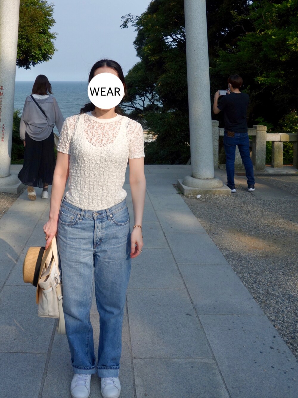 レーストップスをデニムとスニーカーでカジュアルダウン。 ちょいとお出掛け👯♀️