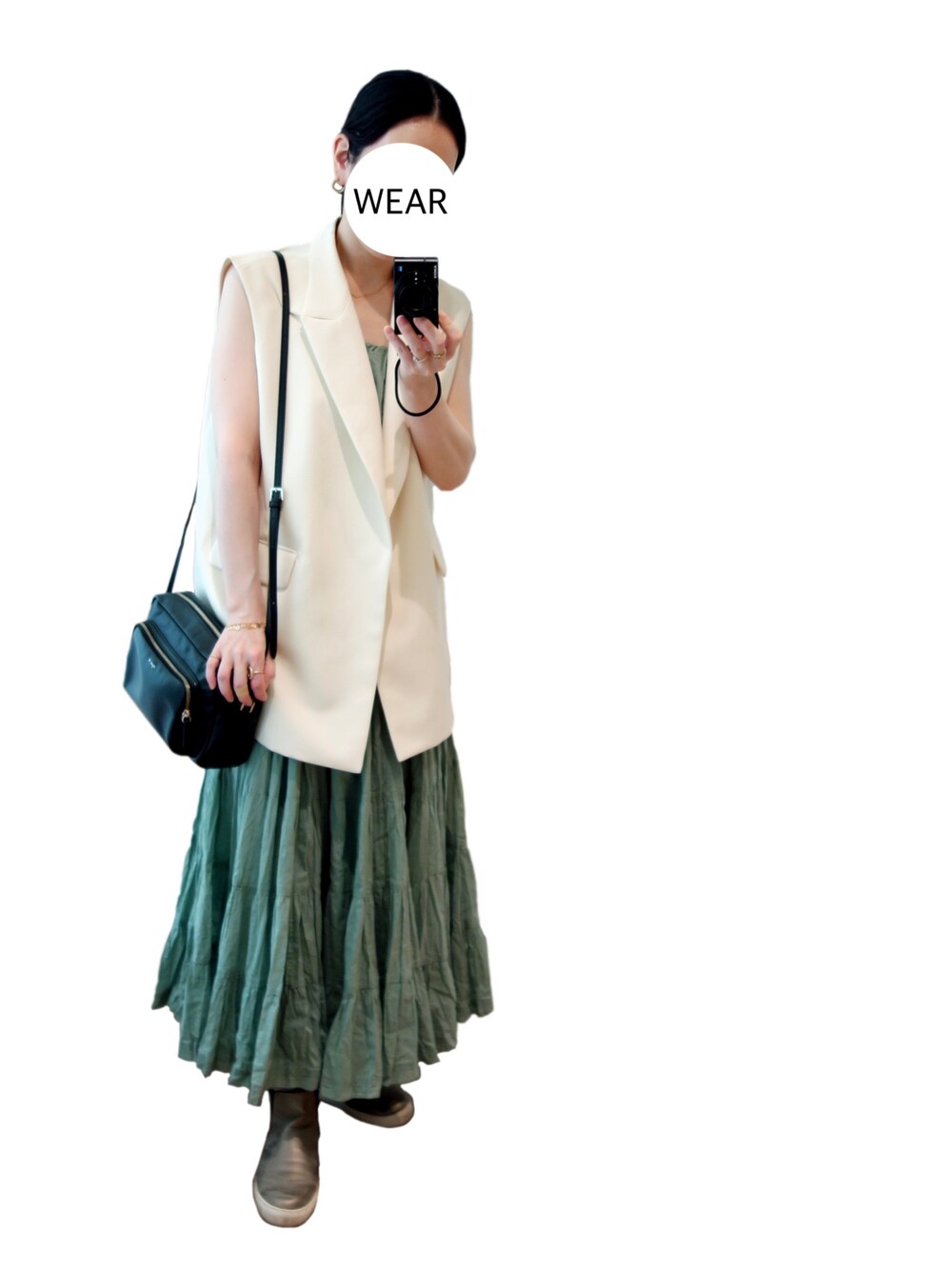 夏惜しみ☀️ このジレはノースリ合わせが好きなので、この夏最後に! 合わせたかった夏ワンピ全部着れて満足👗 バッグと靴でちょっと重くしたけど夏だなぁ