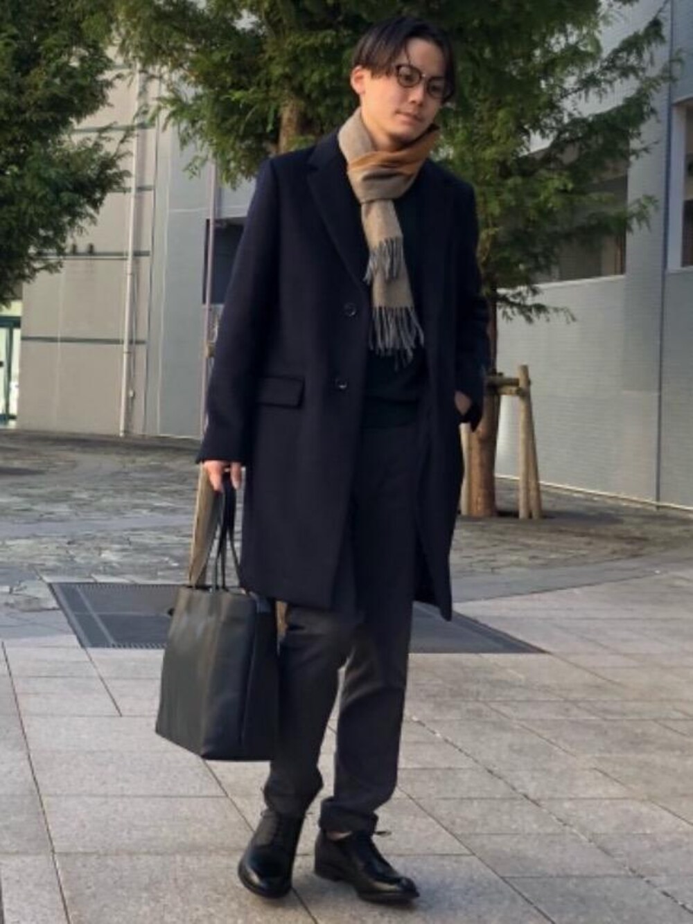 身長(173cm)着用サイズ(コートL ニットS パンツM 靴27.0cm その他フリー)冬場のビジネススタイルはコートとマフラーは必須。着こなしはシンプルなカラーリングですが、小物でアレンジする事で全体の印象が整います。