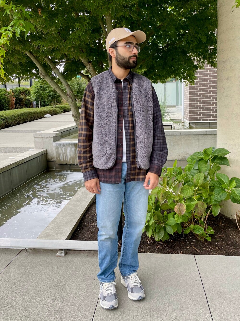 グレー系のスニーカーを着用したメンズの秋コーディネートの1枚目の写真