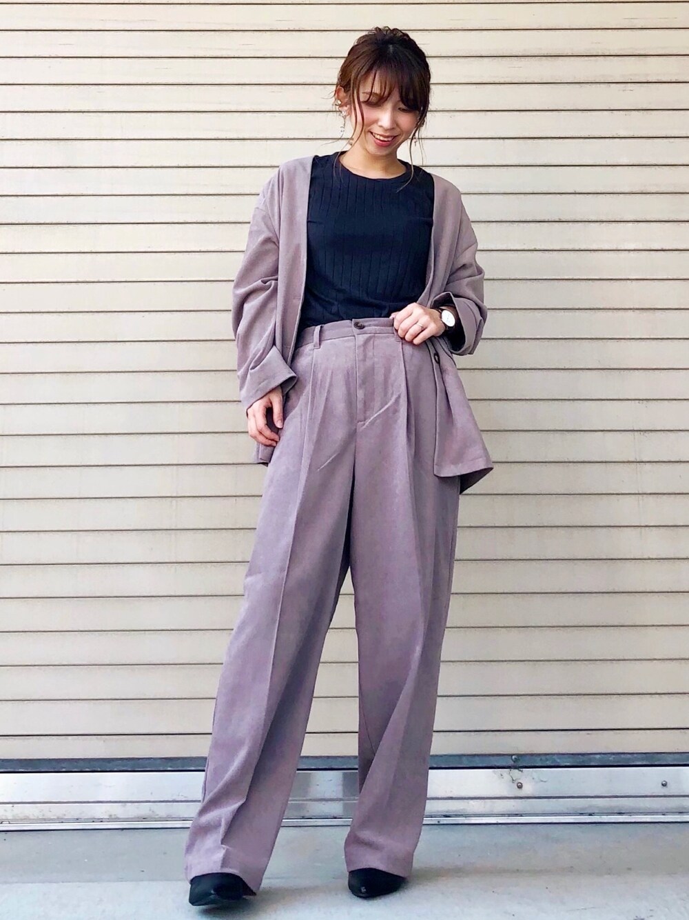 ❤︎セットアップコーデ❤︎ ゆったりシルエットのセットアップ インナーはスッキリしたロンTでシンプルな大人コーデ🤗✨