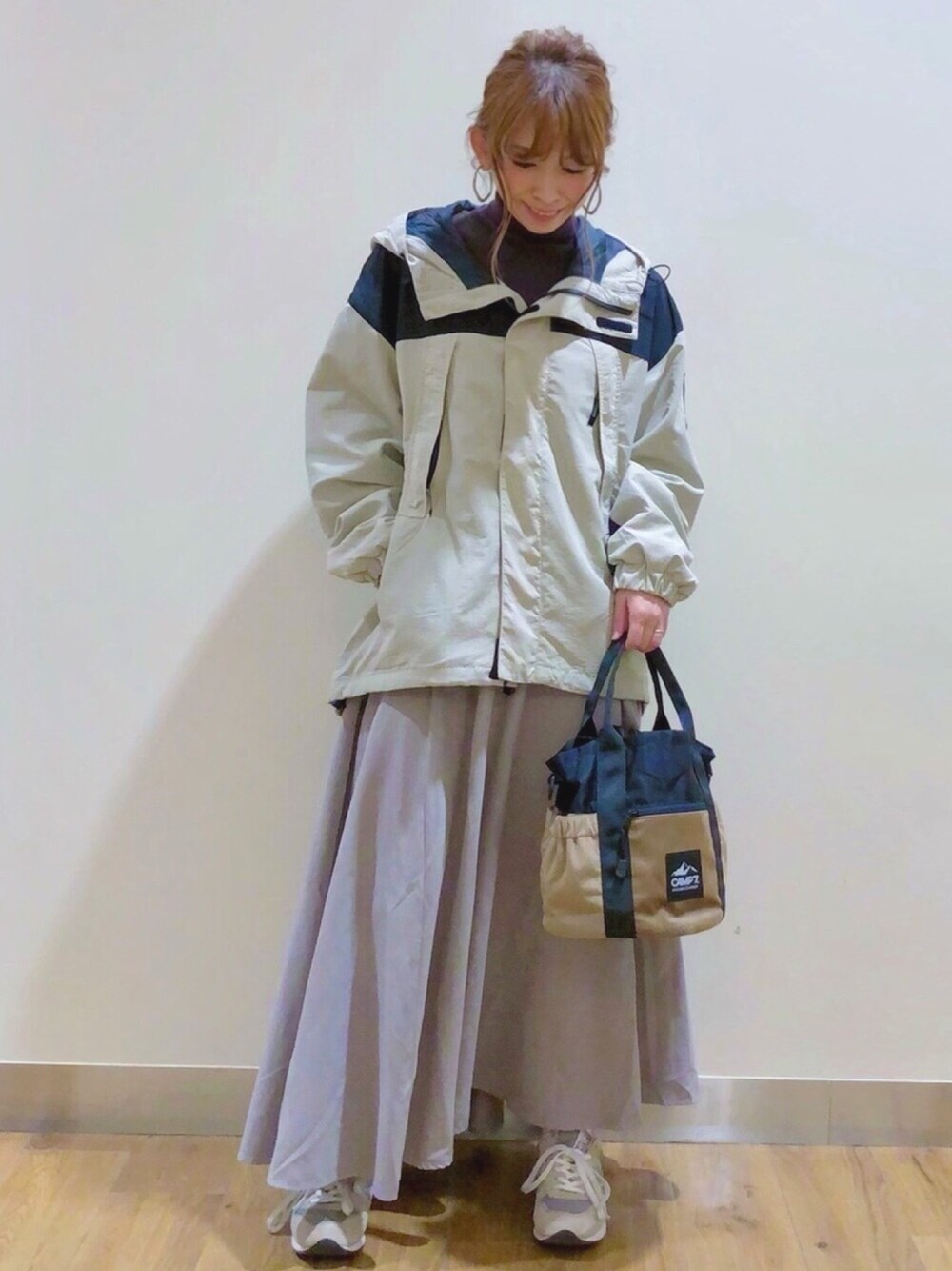 CAMP7マウンテンパーカー✖︎ボリュームスカート 昨年大人気だったマウンテンパーカーをバージョンアップ💕 カジュアルになりがちなパーカーもゆったり肩落ちしたデザインが女性らしくスカートとの相性もバッチリです🤗🤗