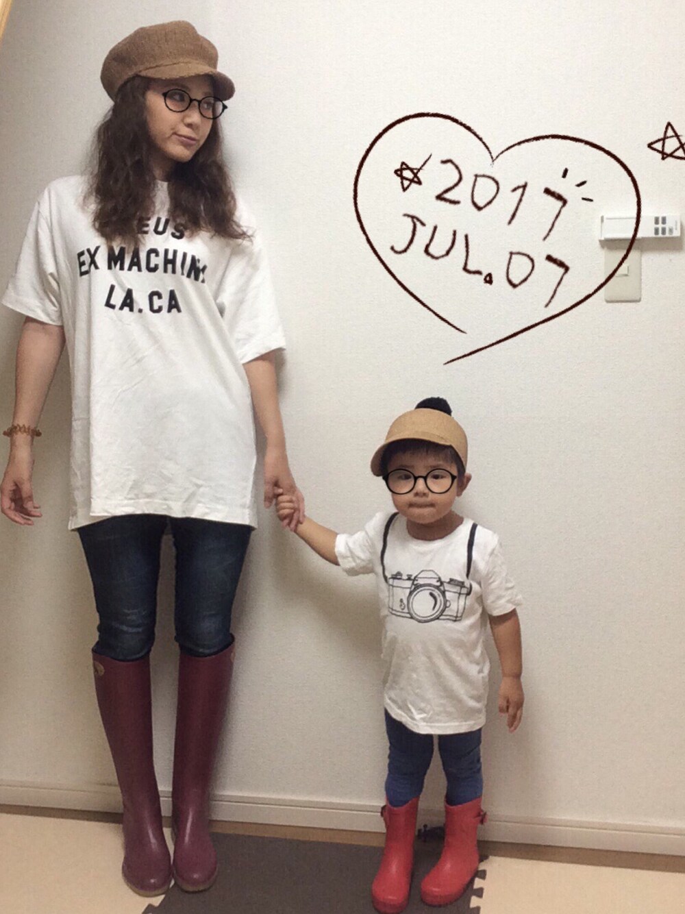 雨リンクコーデ☂️ 赤のレインブーツがお気に入り♡