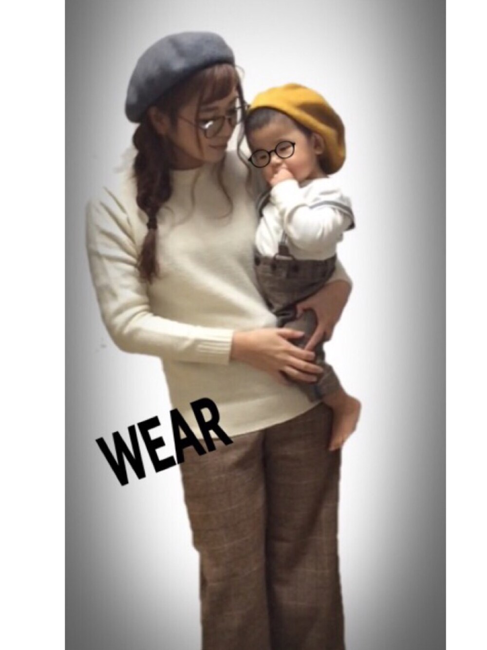 チェックパンツにベレー帽で 久々に息子とリンクコーデ♡ いつまでリンクコーデしてくれるかな☺️