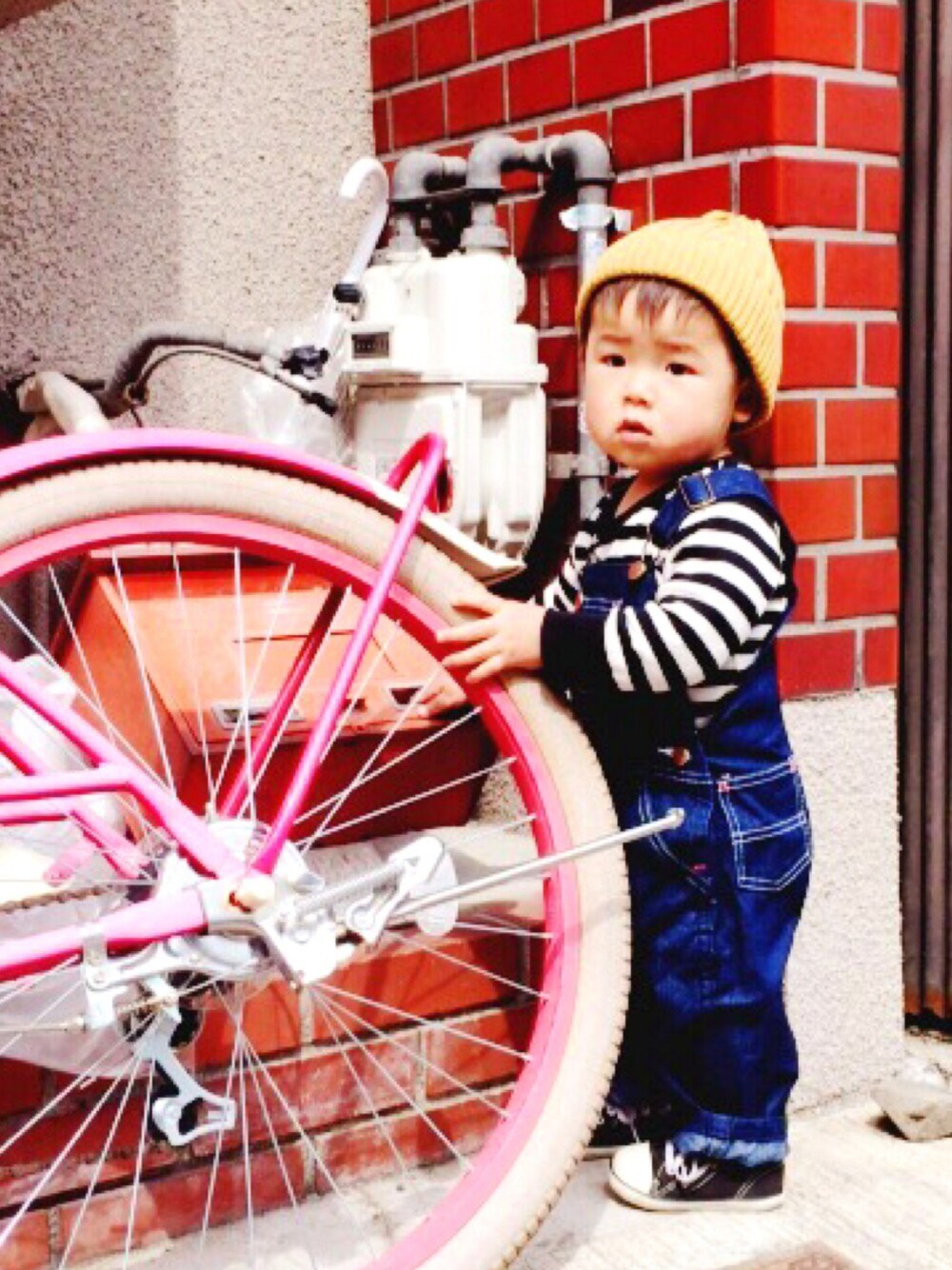 出産祝いでもらったオーバーオールが着れる様になりました♫ 京都は桜の時期で人がいっぱい〜 早くお花見したいな🌸