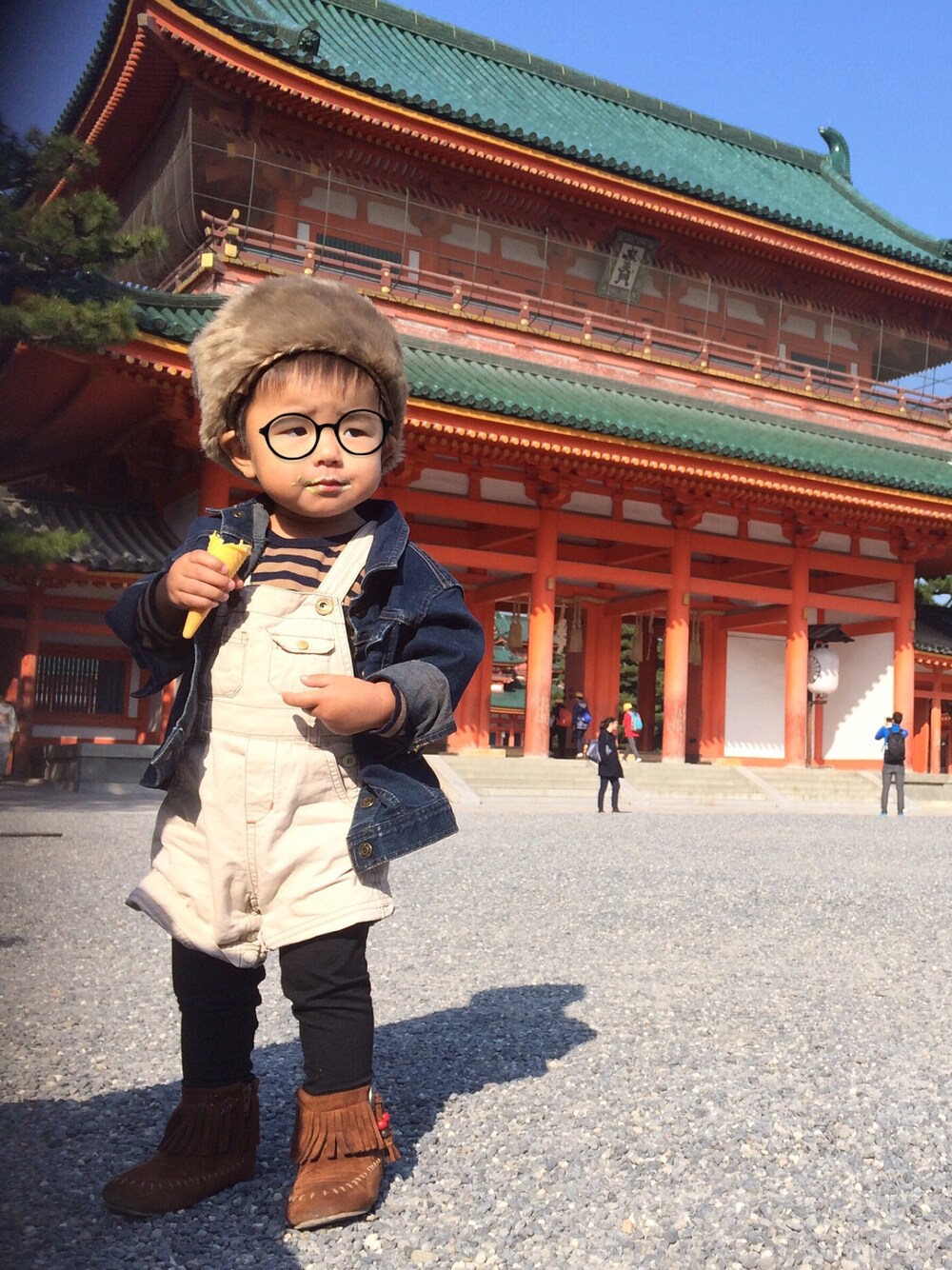 今日は動物園行くつもりがまさかの休園だったので近くの平安神宮に行ってきました♫ 教えてもらった3coinsのファー帽子♡ お揃いにするつもりが髪型が決まらず母断念。。 早くリンクコーデしたいな♡