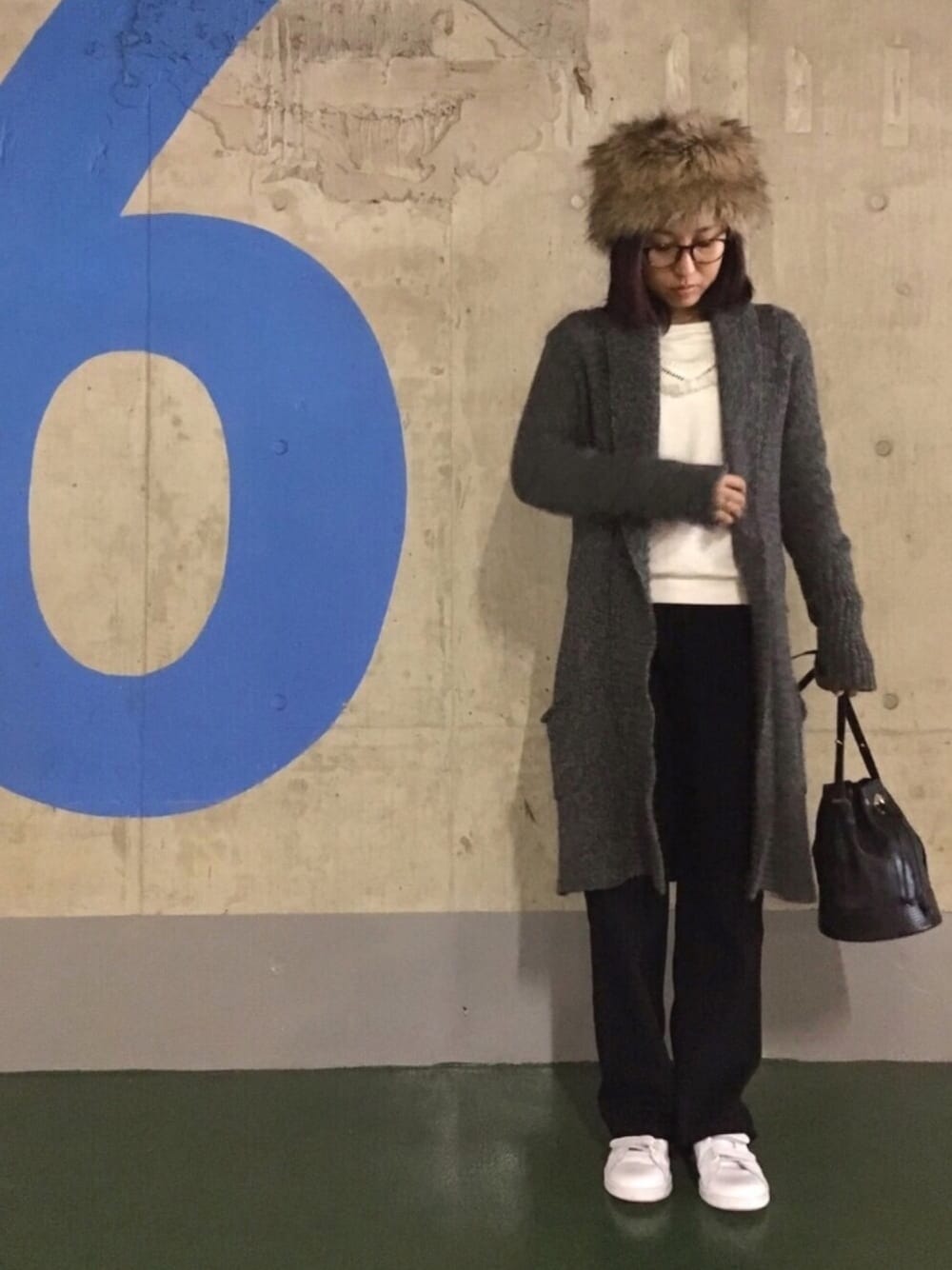 10年寝かせたニットコートと、母からお下がりのバッグ 巾着バッグはバブルの頃に買ったらしいです おっけーバブリー!