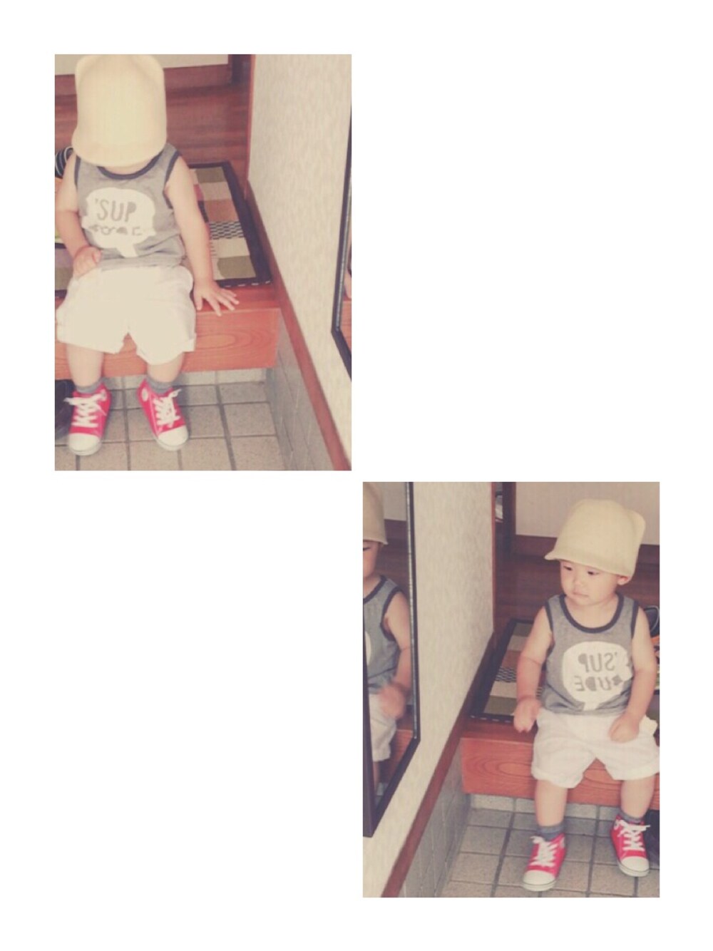 実家の玄関で ひいばあちゃんとお話🙌👵