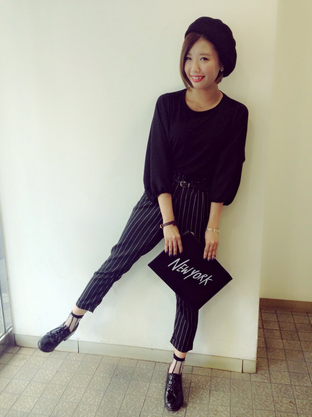 オールブラックスタイル💕 ベレー帽で可愛らしさをプラス🙆