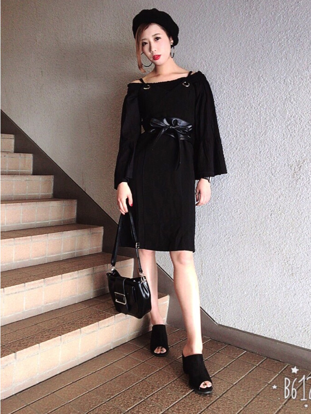 オールブラックコーデ🌹人気のサッシュベルトでウエスト引き締め(^^)!!