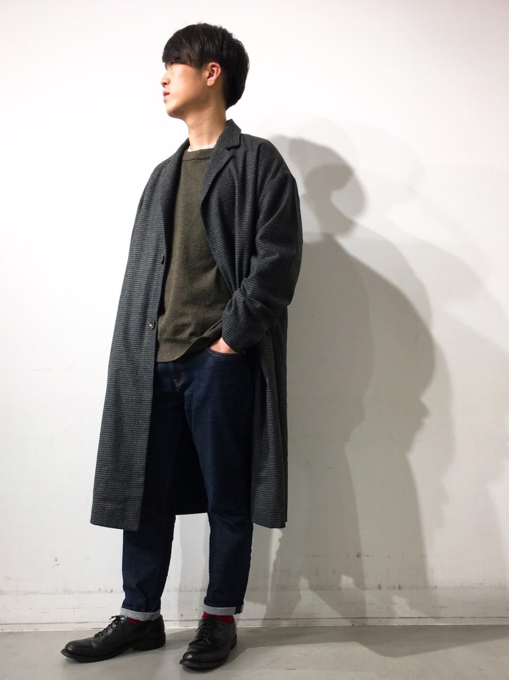 地味になりがちな冬にチェック?千鳥?のコートはおススメです(´・∀・`) ニットは新作なのでタグつけ出来へんかった('ω`;)恐ろしくシンプルで良いです