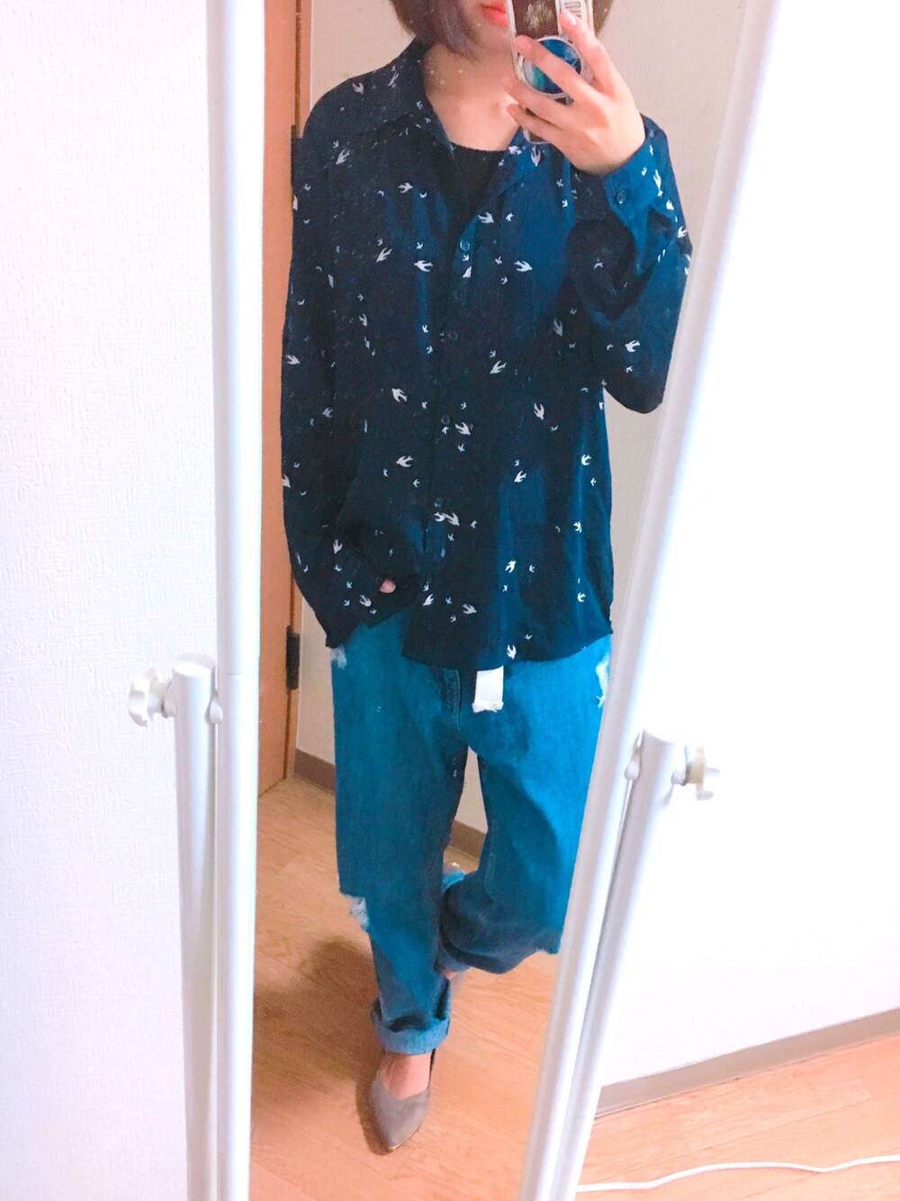 女子会に行く シャツは質感とかゆるさがお気に入り 上下古着