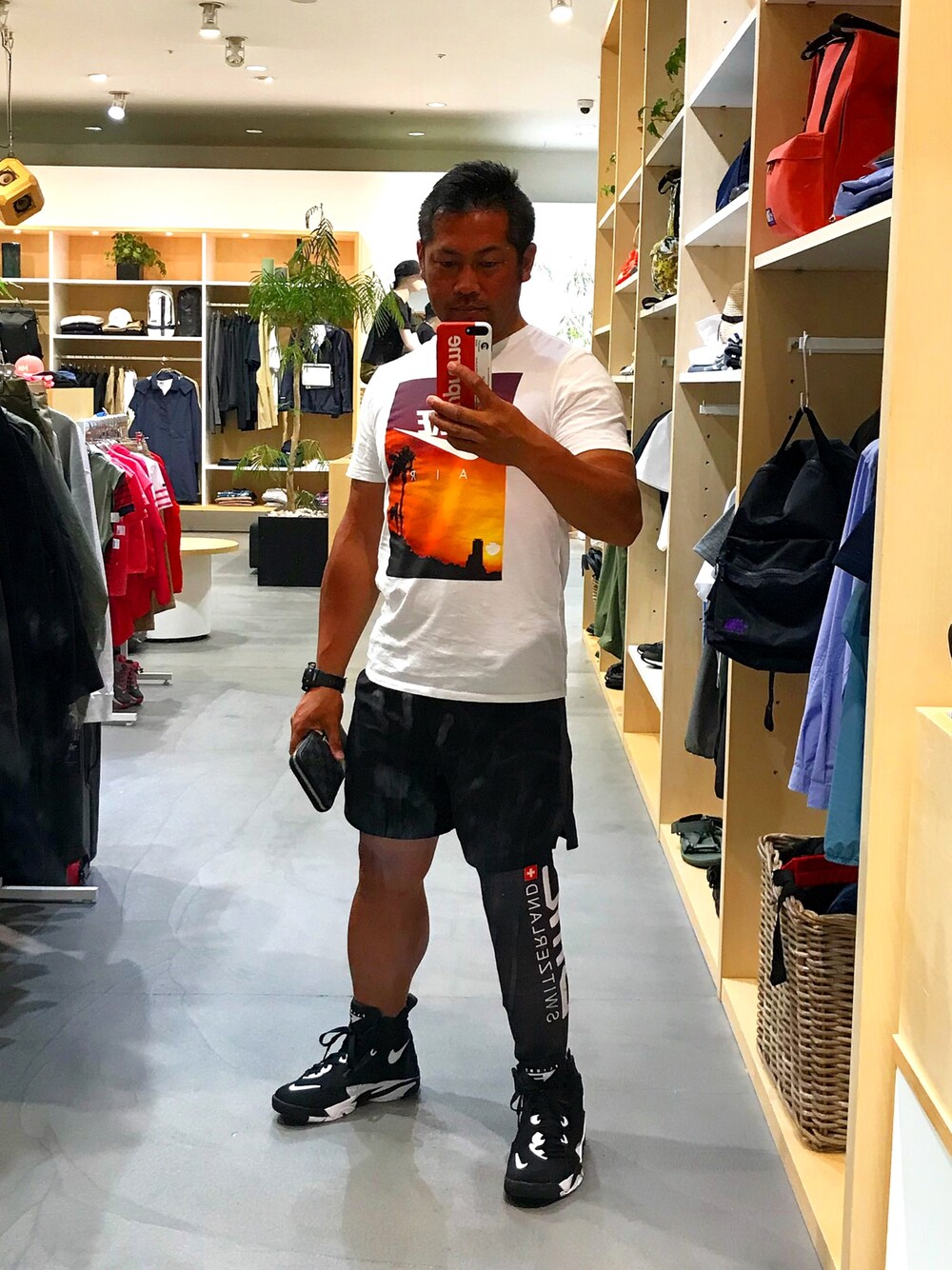 新作のNIKEシューズとTシャツを着てみました。 最近、仕事柄黒のスニーカーばっかり買ってます。(^^;)