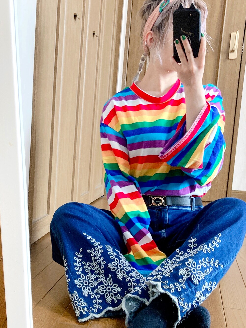 rのTシャツ/カットソー「WC/レインボービッグロンスカットソー」を使ったコーディネート