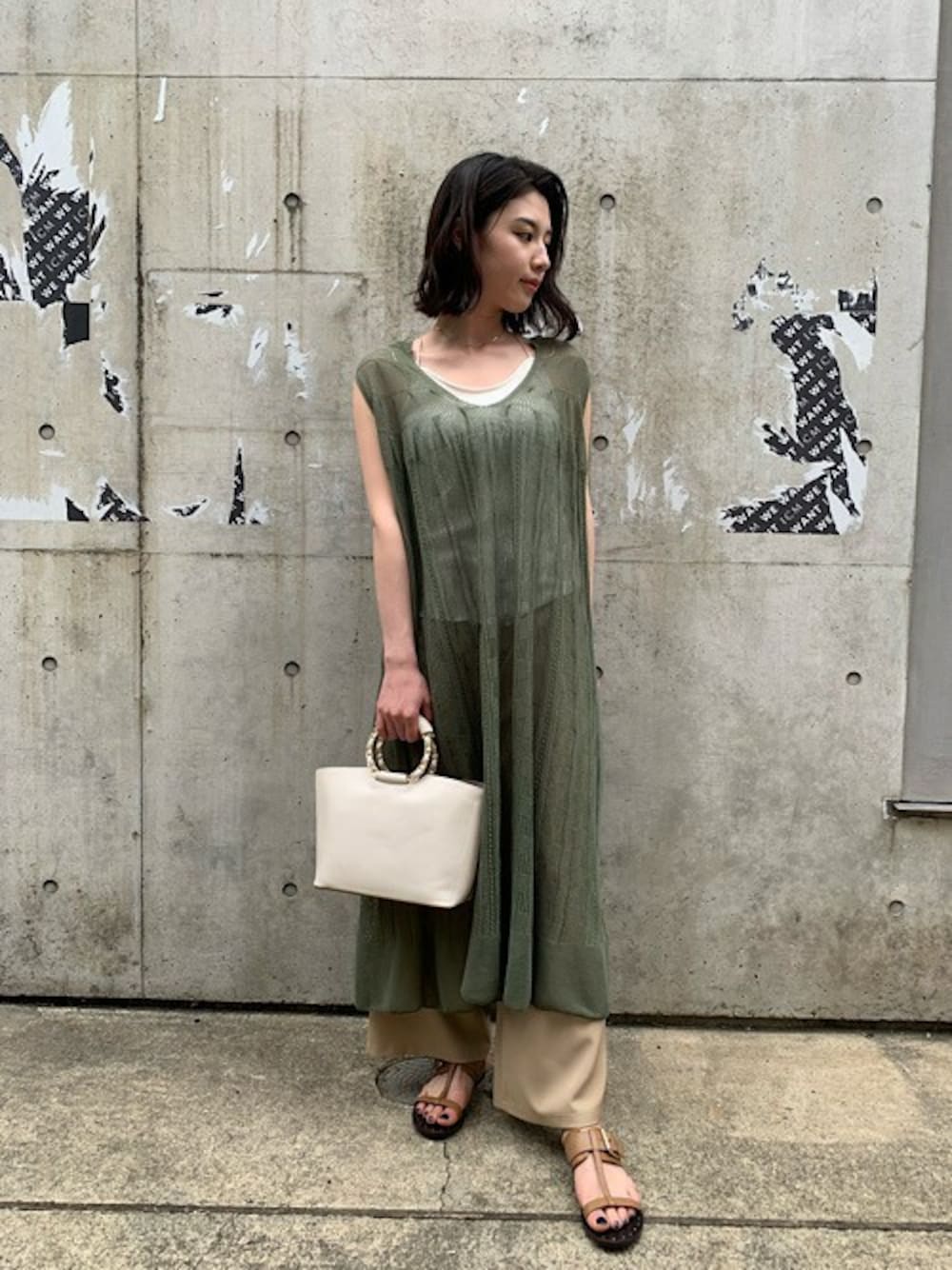カーキ×ベージュを夏っぽく
