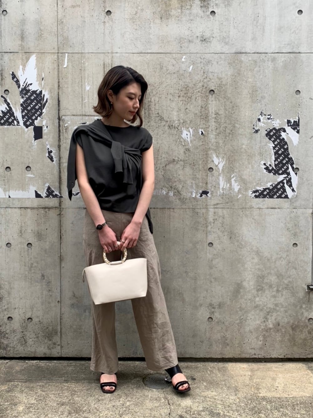 夏のワントーンコーデ☀️ 夏でも暗めのトーンが着たい!!という方におすすめの涼しげなワントーンコーデ。 チャコールグレーとリネンがマッチしていて上品な印象に◎