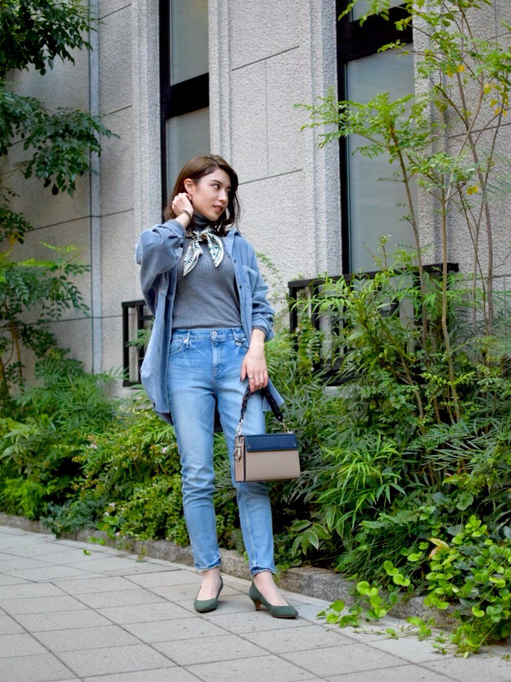 コーデュロイシャツ【ブルーコーデ】 セットアップでお作りのあるブルーコーデュロイシャツ✨上下だとインパクトが強すぎる方にオススメのワントーンコーデです!