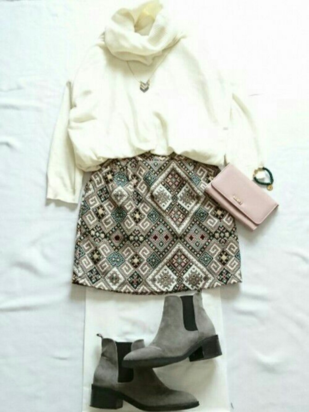 シンプルニット×柄スカート。 好きな形😏💫😏