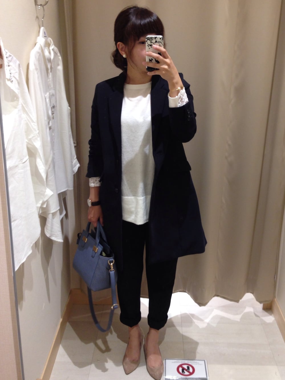 theお仕事〜♪ って、スタイルが最近お気に入り♡ 上下ともザラでした。 白ニットは、腕のところがレースになってて可愛い〜 真冬は、チョット寒いけど^^; チェスターコートは、去年天神にて衝動買い*\(^o^)/* めっちゃ着てる♡