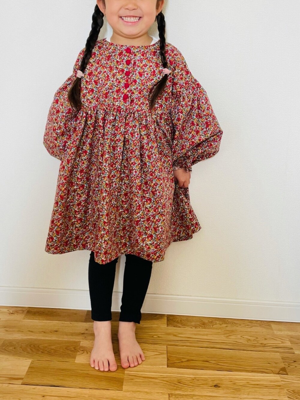 花柄ワンピース♡ 本人の希望でボタン多めにつけました♡♡ 横からのシルエットがかわいい♡
