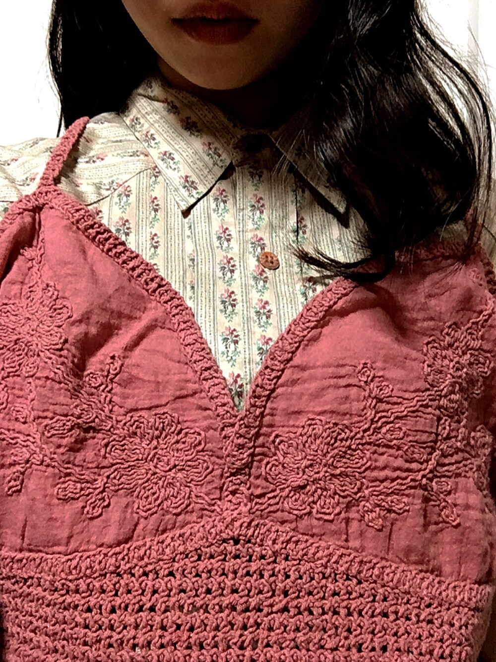花柄トップスとピンクビスチェ合わせたら、、個人的にかわゆ、でした、、 2着とも古着です~