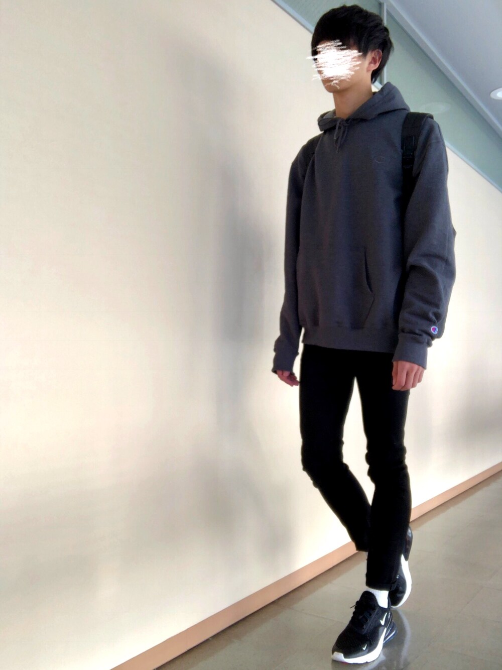 見ていただきありがとうございます😊 そしていつもいいね、お気に入りありがとうございます☺️ 今日はチャンピオンのチャコールグレーのパーカーを着て、下を黒スキニーでしめてみました😃 最近気温が下がってきたので、裏起毛のパーカーはあたたかくて最高です🤣 あとエアマックスはやっぱり履きやすいですね😆