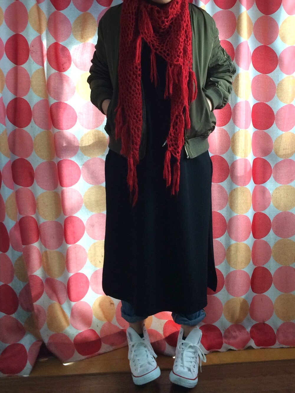 しまパトしてたらMA-1ぽいの発見迷わず購入しちゃった♡ お気に入りのワンピースは両サイドスリットが入ってるから色々なコーデができるの♡今日はカジュアルにデニムを履いてみました‼︎