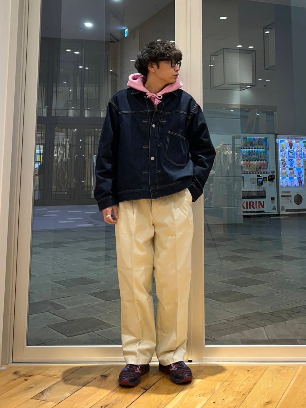 いつもご覧いただきありがとうございます! デニムジャケットに春らしくピンクのフーディーを。ホワイトのボトムスでクリーンな印象に。