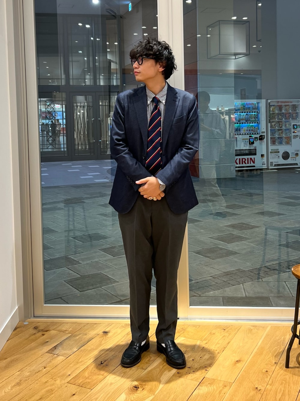 いつもご覧いただきありがとうございます! チェックのシャツにストライプのネクタイを。 チェック柄が細かいのでストライプは大きめのものでバランスを取りました!