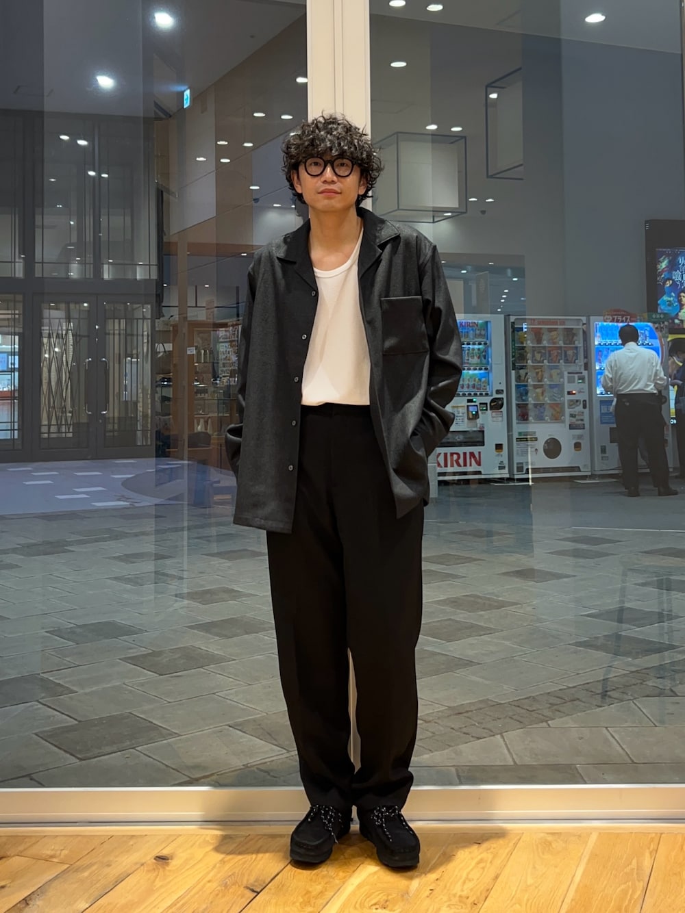いつもご覧いただきありがとうございます! ウールっぽい素材のボトムスは程よくテーパードが効いておりキレイめなシャツと相性抜群! シャツはオープンカラー使用で今の時期はタンクトップと合わせて見ました。