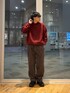 いつもご覧いただきありがとうございます! レッド×ブラウン この秋冬は赤を使いたい気分、アウターのインナーとしても1枚としても〇 前だけインしてスタイルアップを