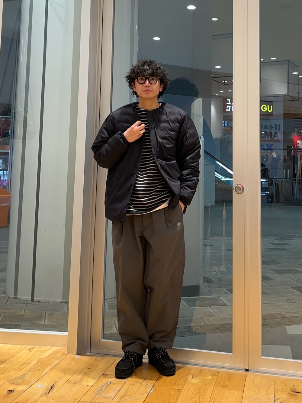 いつもご覧いただきありがとうございます! 全体的にトーンは合わせて、シンプルになりすぎないようにインナーはボーダーで。 ナイロン素材で動きやすくストレスフリーで着用出来るのでオススメです!
