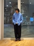 いつもご覧いただきありがとうございます! バンドカラーのシャツはフロント開けて羽織りとしても!