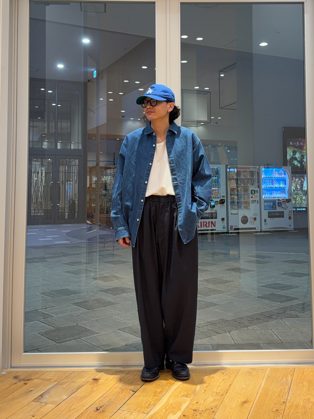 いつもご覧いただきありがとうございます! デニムシャツに太めのスラックス。 いい塩梅でバランス取れてて春にオススメのスタイル。