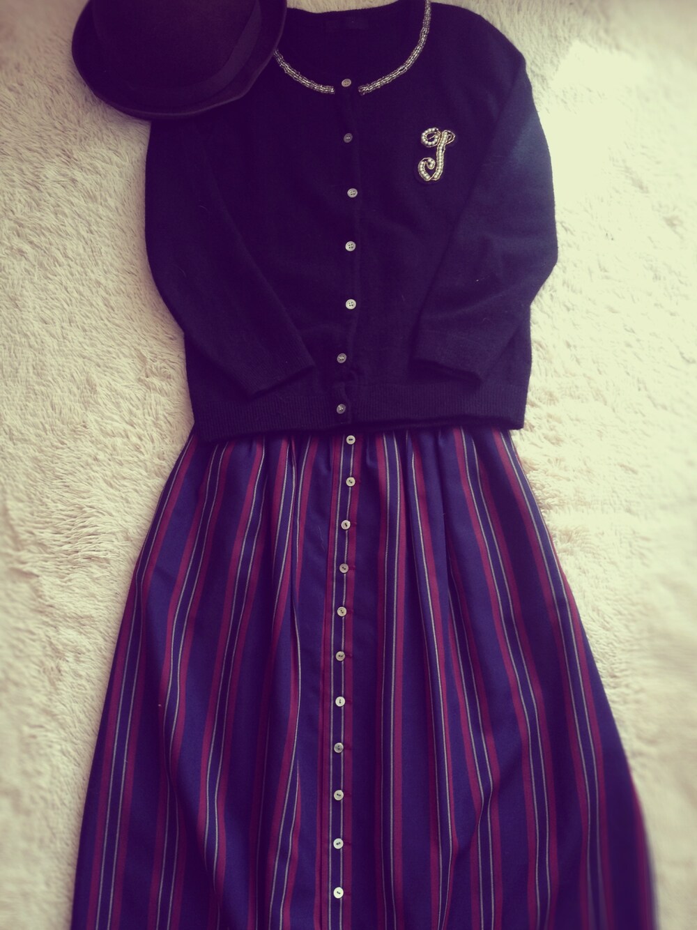 スカートは母のお下がり。 元町で買った大のお気に入りだったそう。 綺麗なままで、たくさん着ました♫ ありがとう。